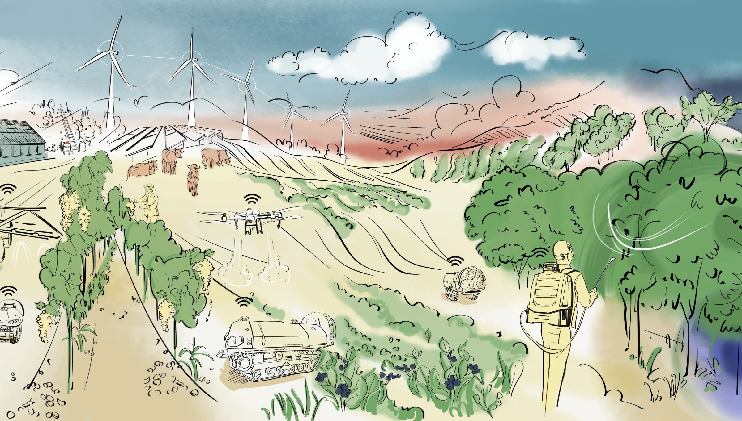 Autonomous robotic sprayers for specialty crops — strong productivity gains with up to 70% less chemicals through electrostatic application (primary) and precise autonomous coverage (secondary).
